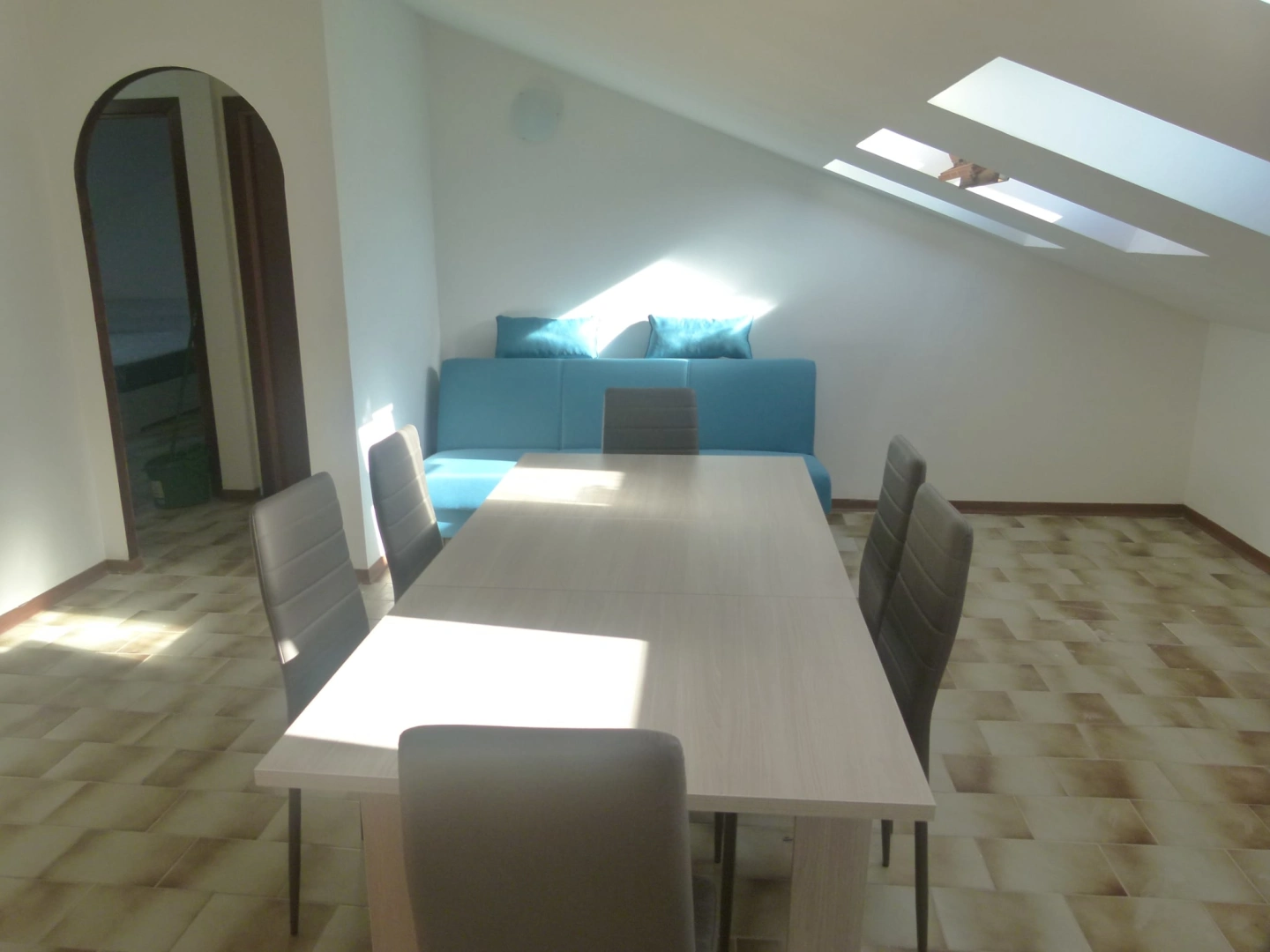 Appartamento mansardato di 100mq composto di ingresso su ampio soggiorno con tavolo 6 posti a sedere, piccola scrivania e divano utilizzabile come posto letto aggiuntivo. Cucina abitabile arredata e corredata di tutti gli accessori per cucinare. 2 camere da letto matrimoniali entrambe con armadio e cassettiera. Bagno con doccia, wc e bidet. La casa dispone di tutte le dotazioni indispensabili per un comodo soggiorno: TV, Internet e Wifi gratuiti, asciugamani e lenzuola sono inclusi.